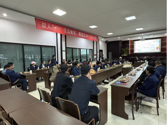 随着欢快的音乐响起,生日会正式拉开帷幕。常务副总黄总携手各位领导为大家送上了真挚的生日祝福,温暖的话语让现场氛围愈发浓厚。随后,大家围聚在一起,为寿星们共唱生日歌,熟悉的旋律在会场中回荡,温馨的气息感染着每一个人。紧接着,寿星们闭上眼睛,默默许下心中美好的愿望,然后一同吹灭蜡烛,将此刻的美好与期许定格。