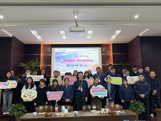 庆典伊始,公司常务副总黄总携手各位领导亲临现场,为各位寿星送上最真挚的生日祝福。黄总在致辞中表示,员工是公司发展的核心力量,每一位寿星的成长,都与公司的发展同频共振,感谢大家一路以来的坚守与付出,愿各位寿星在新的一岁里,平安喜乐、不负韶华,在岗位上绽放更多光彩,与公司共赴新征程、共筑新辉煌。一句句温暖的寄语,一声声诚挚的祝福,让现场的每一位寿星都倍感亲切与鼓舞。